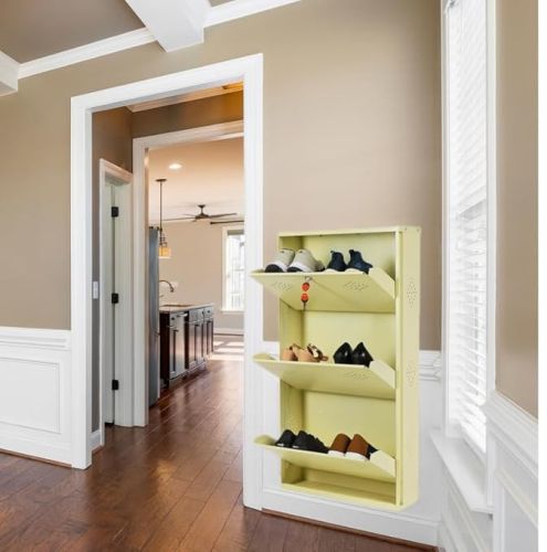 3 Door Ivory 21 Inch Wall Mounted Modern Shoerack Metal Shoe Rack